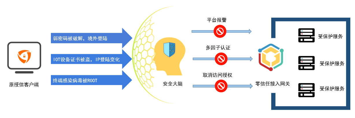 同時系統(tǒng)會根據(jù)身份的登陸習(xí)慣變化(如時間、地理位置、網(wǎng)絡(luò)等),并結(jié)合終端運(yùn)行環(huán)境檢測評級技術(shù), 動態(tài)調(diào)整用戶登錄策略,始終控制用戶的最小訪問權(quán)限。