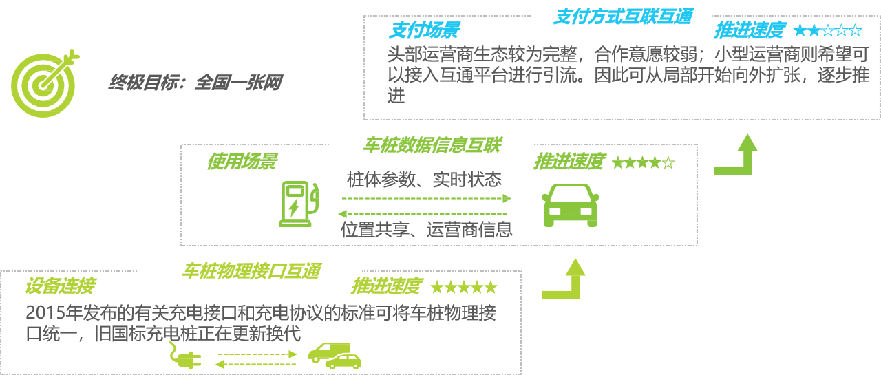 互聯(lián)互通成為行業(yè)共識(shí):由于利益分配問(wèn)題支付互通短期內(nèi)阻礙較大,行業(yè)實(shí)現(xiàn)電動(dòng)汽車(chē)、充電樁、運(yùn)營(yíng)商三方之間的互聯(lián)互通,可有效解決這一難題,通過(guò)信息數(shù)據(jù)的分析充分提高單樁充電設(shè)施的利用效率。