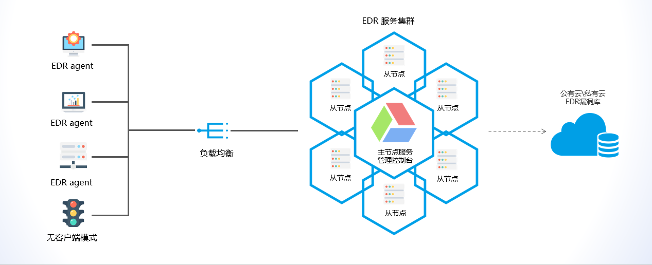 云涌終端安全檢測與響應(yīng)平臺,由部署到終端負責收集上報數(shù)據(jù)的代理程序、以及負責數(shù)據(jù)分析、展示及響應(yīng)的中心服務(wù)組成。