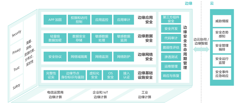 邊緣安全是邊緣計(jì)算的重要保障。邊緣安全涉及跨越云計(jì)算和邊緣計(jì)算縱深的安全防護(hù)體系,只有增強(qiáng)邊緣基礎(chǔ)設(shè)施、網(wǎng)絡(luò)、應(yīng)用、數(shù)據(jù)識(shí)別和抵抗各種安全威脅的能力,才能為邊緣計(jì)算產(chǎn)業(yè)的發(fā)展構(gòu)建安全可信環(huán)境。邊緣安全的核心價(jià)值體現(xiàn)在可以提供可信的基礎(chǔ)設(shè)施:主要包括計(jì)算、網(wǎng)絡(luò)、存儲(chǔ)類的物理資源和虛擬資源。基礎(chǔ)設(shè)施是包含路徑、數(shù)據(jù)交互和處理模型的平臺(tái)面,可以應(yīng)對(duì)鏡像篡改、DDoS 攻擊、非授權(quán)通信訪問(wèn)、端口入侵等安全威脅。