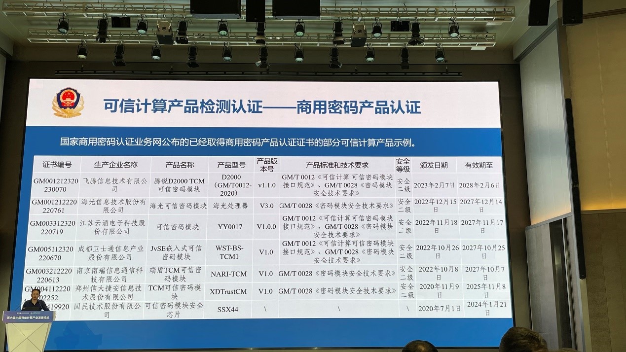 云涌科技副總裁高淵先生全程參與本次論壇會議,并作為企業(yè)代表上臺領獎。云涌可信密碼模塊YY0017作為已取得商用密碼產(chǎn)品認證證書的可信計算產(chǎn)品示例在會議現(xiàn)場被提及,并獲得了現(xiàn)場領導和專家們的一致肯定。