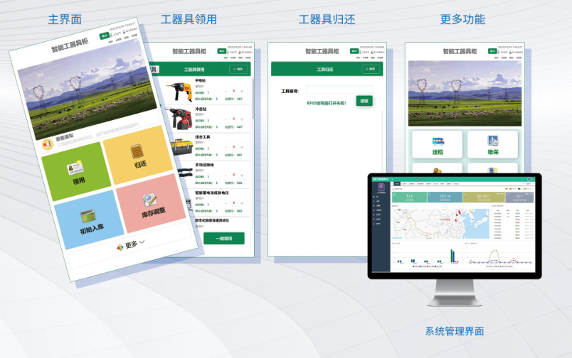 智能工器具管理系統(tǒng)是針對供電所普通工器具和安全類工器具管理的一整套解決方案。根據(jù)存儲工具的環(huán)境要求不同,設(shè)置不同的存儲柜和管理方式。系統(tǒng)采用RFID標(biāo)簽對工具進(jìn)行識別和管理,通過智能工具柜的標(biāo)簽識別和智能控制,完成工具使用過程中的自助借還、領(lǐng)用引導(dǎo)、錯誤提醒以及自動盤點等功能。