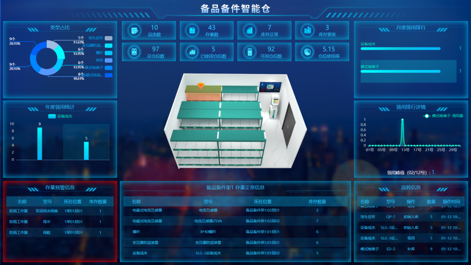 智能稱重貨柜:用于管理高價值備品備件,通過顯示模塊和定位指引,實現(xiàn)自助領(lǐng)用管理和信息同步管理。