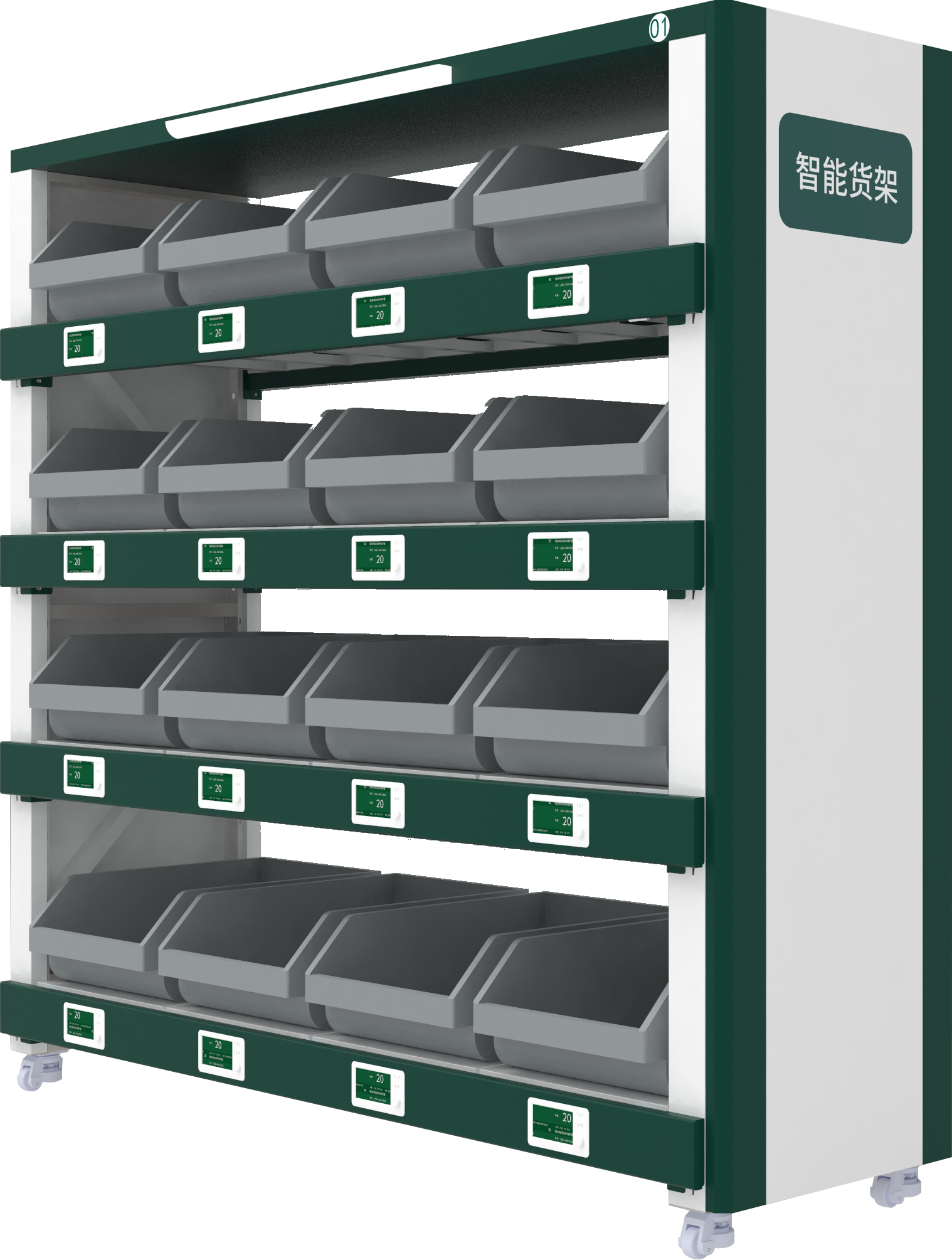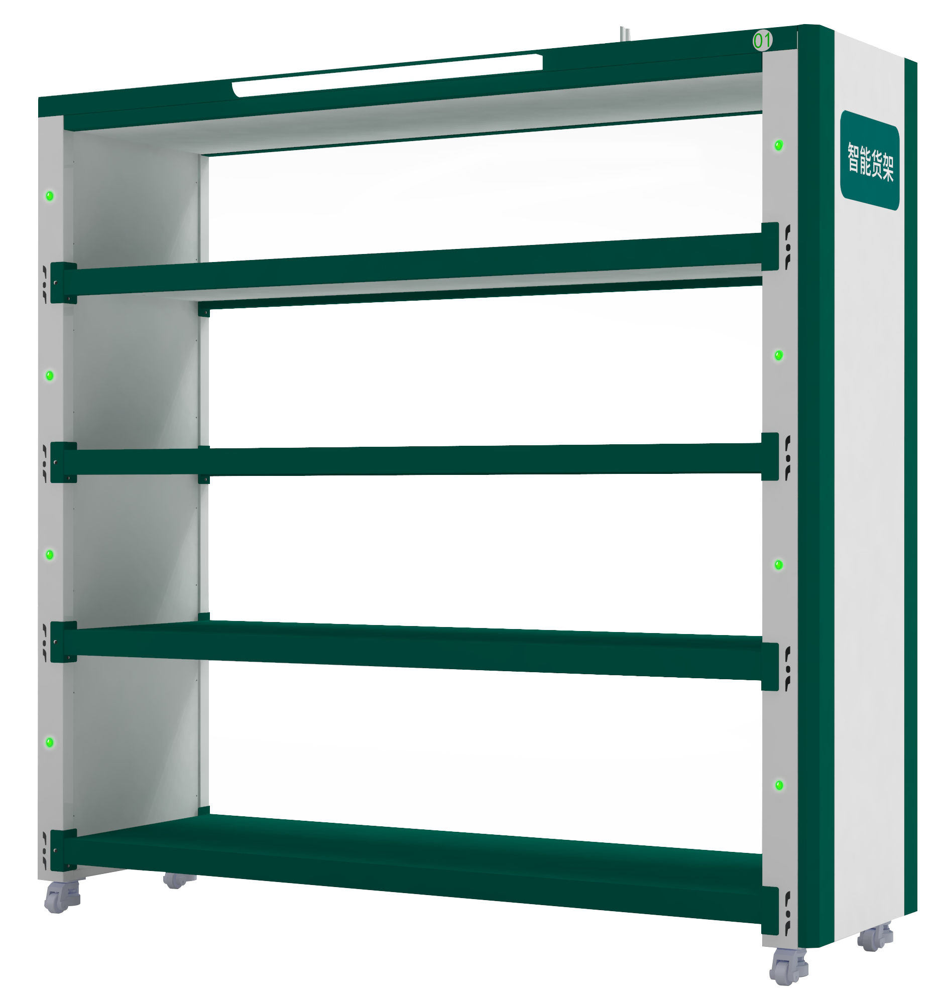 RFID智能貨架:用于管理尺寸較大的工具,通過RFID技術(shù)實現(xiàn)物品定位識別,通過指示燈實現(xiàn)存取操作精確引導(dǎo)。