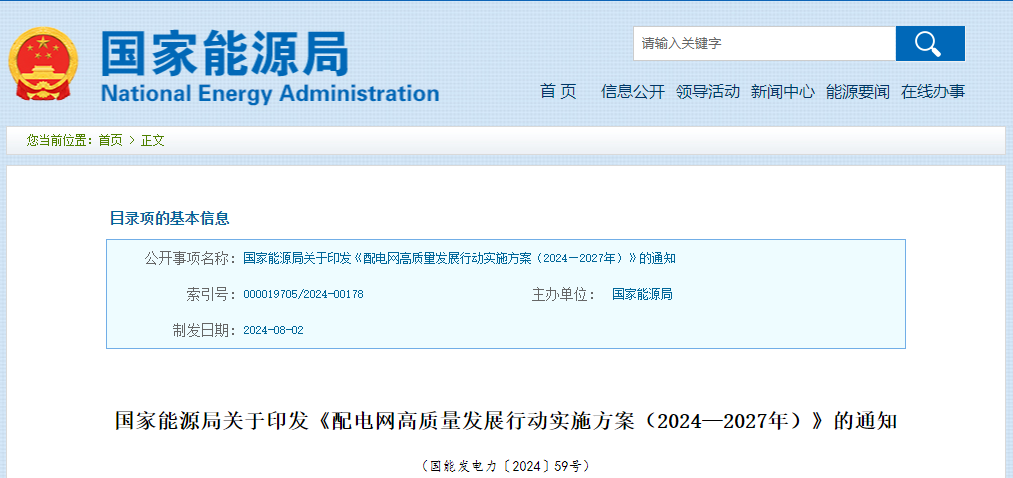 ? ? ? 前不久,國家能源局發(fā)布《配電網(wǎng)高質(zhì)量發(fā)展行動(dòng)實(shí)施方案(2024—2027年)》,其中提出,未來三年工作重點(diǎn)將圍繞供電能力、抗災(zāi)能力和承載能力提升,結(jié)合各地實(shí)際,重點(diǎn)推進(jìn)“四個(gè)一批”建設(shè)改造任務(wù)。