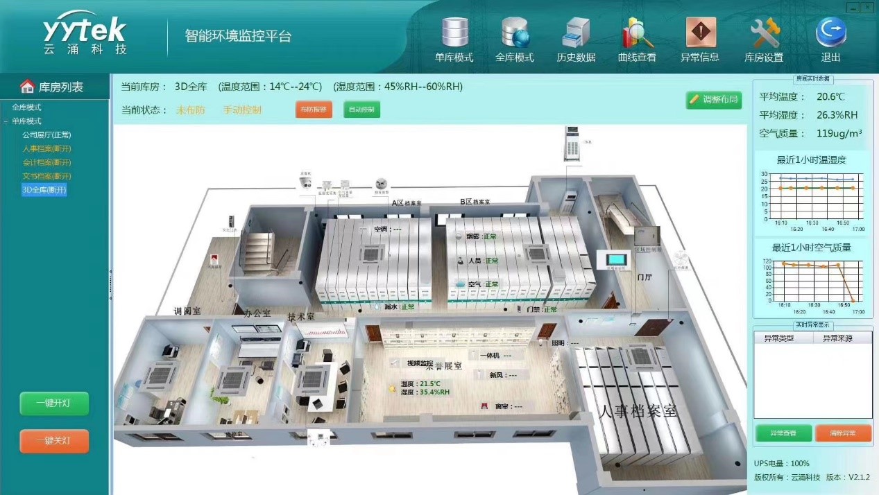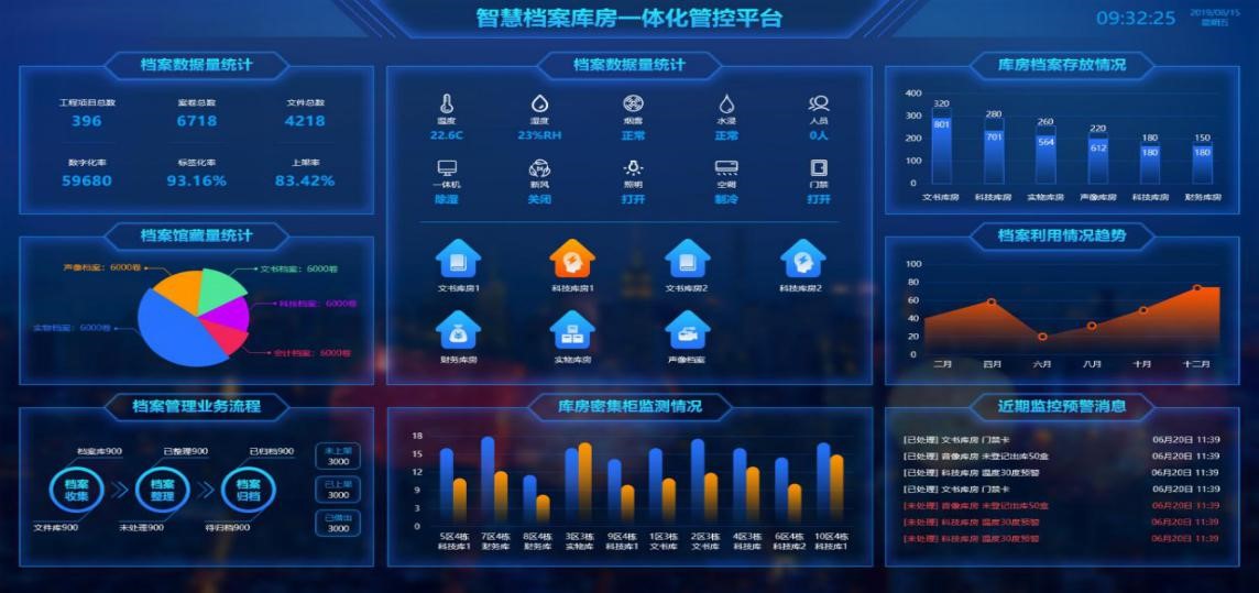 云涌檔案一體化管控平臺,集成了物聯(lián)網云平臺、低功耗的物聯(lián)網通信技術,環(huán)境監(jiān)控系統(tǒng),底層傳感器采集,電機控制,結構設計等技術,利用云平臺的處理能力和存儲技術,構成一個一體化、網絡化的集中監(jiān)控系統(tǒng),提高日常維護效率,降低勞動強度和人工成本。
